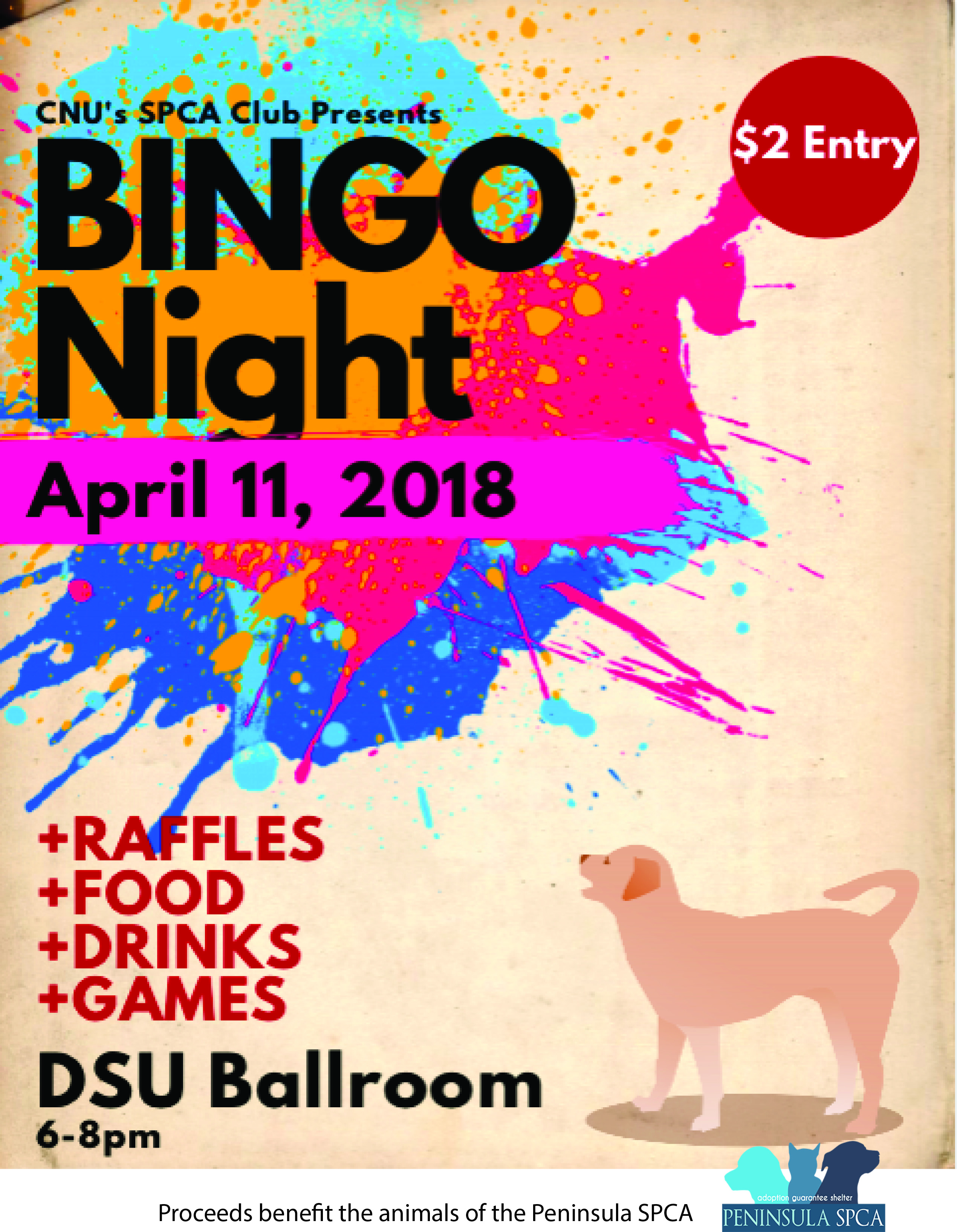 Join the CNU SPCA Club for a fun Bingo Night to benefit the animals of the PSPCA!