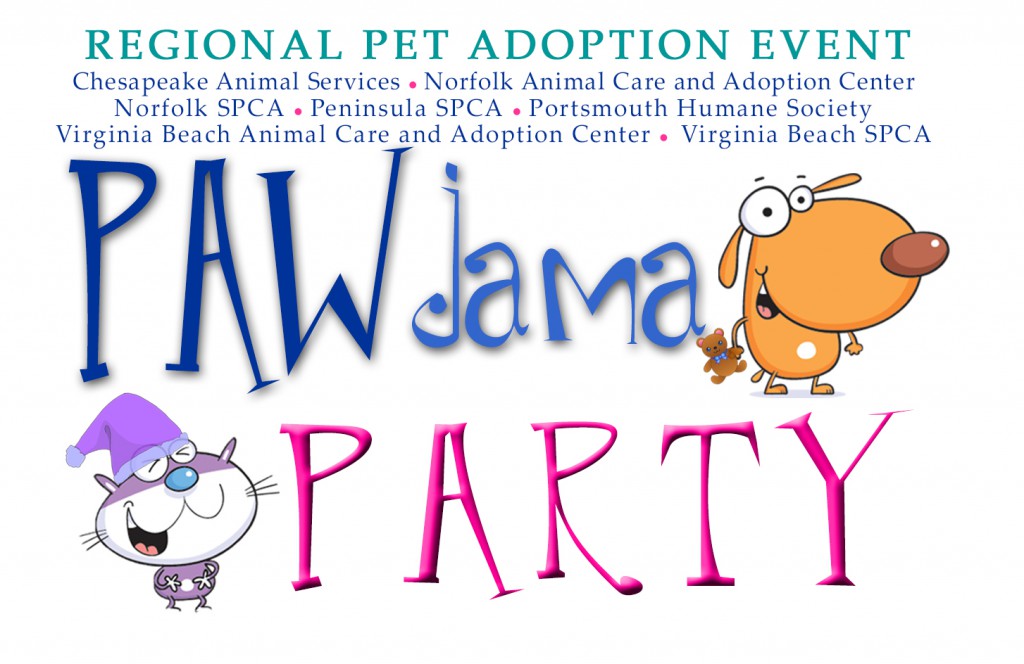 This Saturday, April 20 from 10 a.m. to 6 p.m. the Hampton Roads animal shelters are having a collaborative “PAWjama Party”! Our staff and volunteer will be dressed up in their best pajamas and slippers, to welcome visitors and adopters. Adoption fees for Dogs and Cats over 1 year old are discounted to only $50!