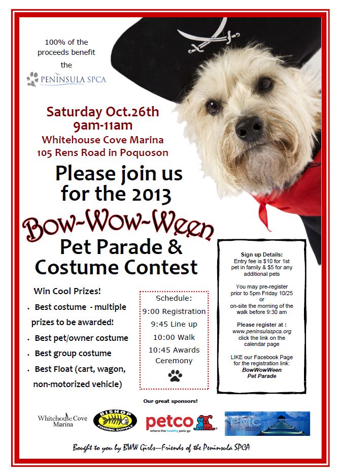 To register for this great event benefiting the Peninsula SPCA, please visit http://bowwowweenpetparade.eventzilla.net/
