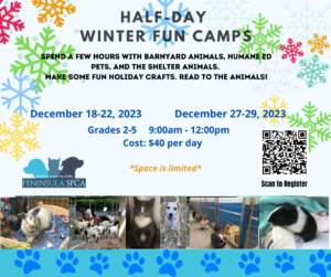 $40Spend a few hours with the animals at the shelter and petting zoo and hang out with some of the Humane Education animals too! Enjoy activities like reading to the animals and fun arts and crafts.