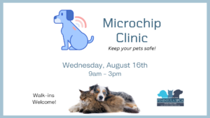 The Peninsula SPCA is hosting a special microchip clinic from 9am-3pm. Microchip services will be available for $25 and walk-ins welcome!