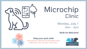 Protect your pet and keep them safe by getting them microchipped! The Peninsula SPCA is hosting a special microchip clinic ahead of the July 4th holiday on Monday, July 1st, 9am-3pm.