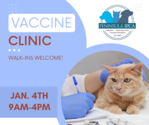 The Peninsula SPCA is hosting a special vaccine clinic on Thursday, January 4th from 9am-4pm.