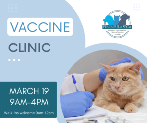 The Peninsula SPCA is hosting a special vaccine clinic on Tuesday, March 19th from 9am-4pm.