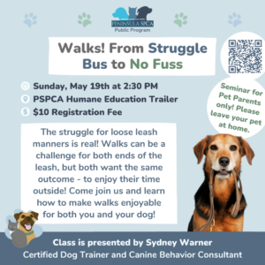 Limited space available! Reserve your spot here: Walks! From Struggle Bus to No Fuss! – PSPCA Seminar – Clever Critters, LLC