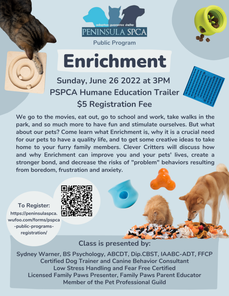 Space is limited To register: https://peninsulaspca.wufoo.com/forms/spring-break-camps-2020/